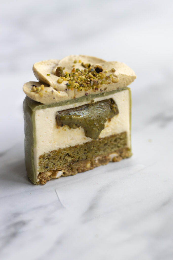 - tu vivras l'expérience unique d'un cours "Petits Entremets Pistache & Fleur d'Oranger" avec Coralie Jean-Élie