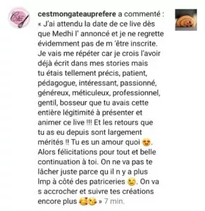 "Mehdi est très pédagogue (...) J'en retiens une tonne d'astuces, même sur des sujets que je fais régulièrement, j'ai appris de nouvelles choses."