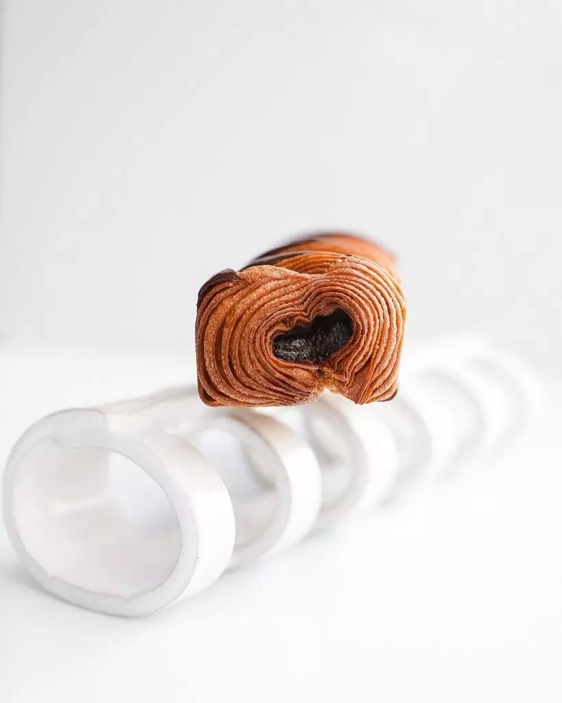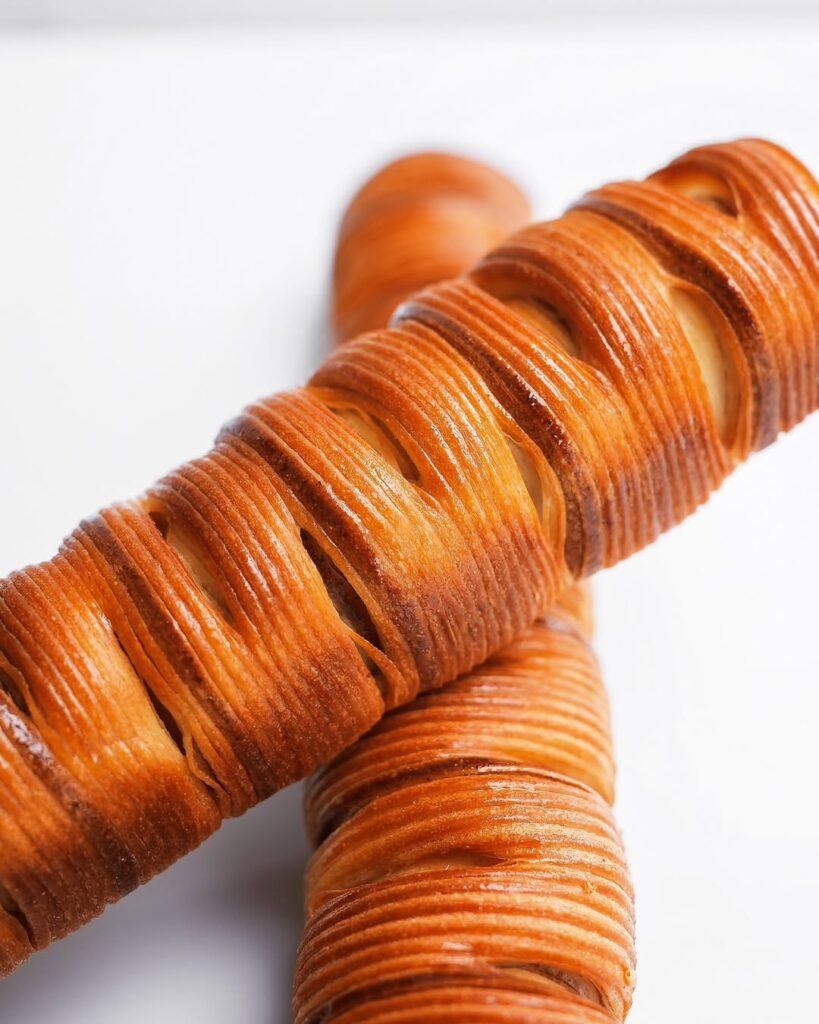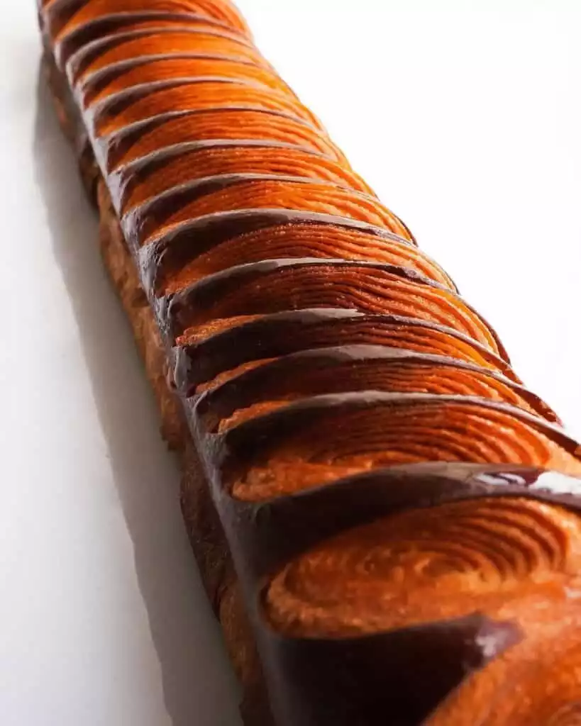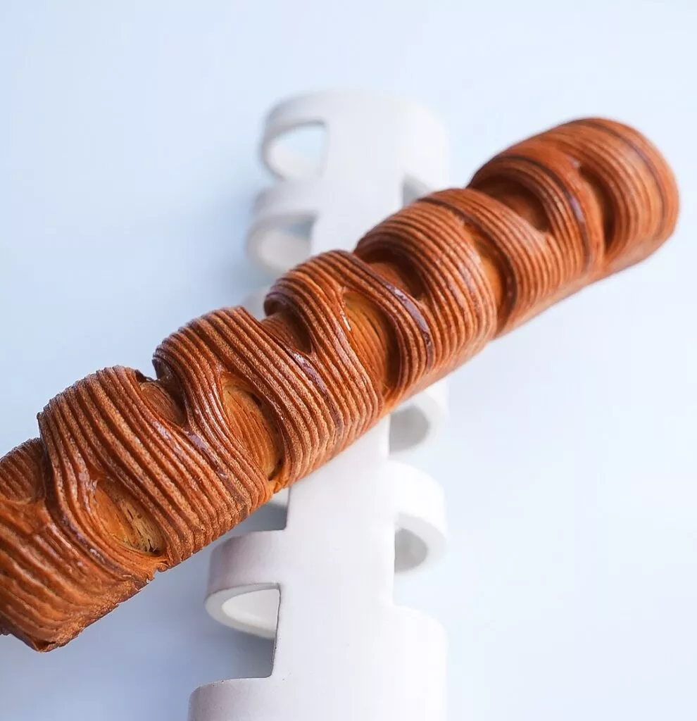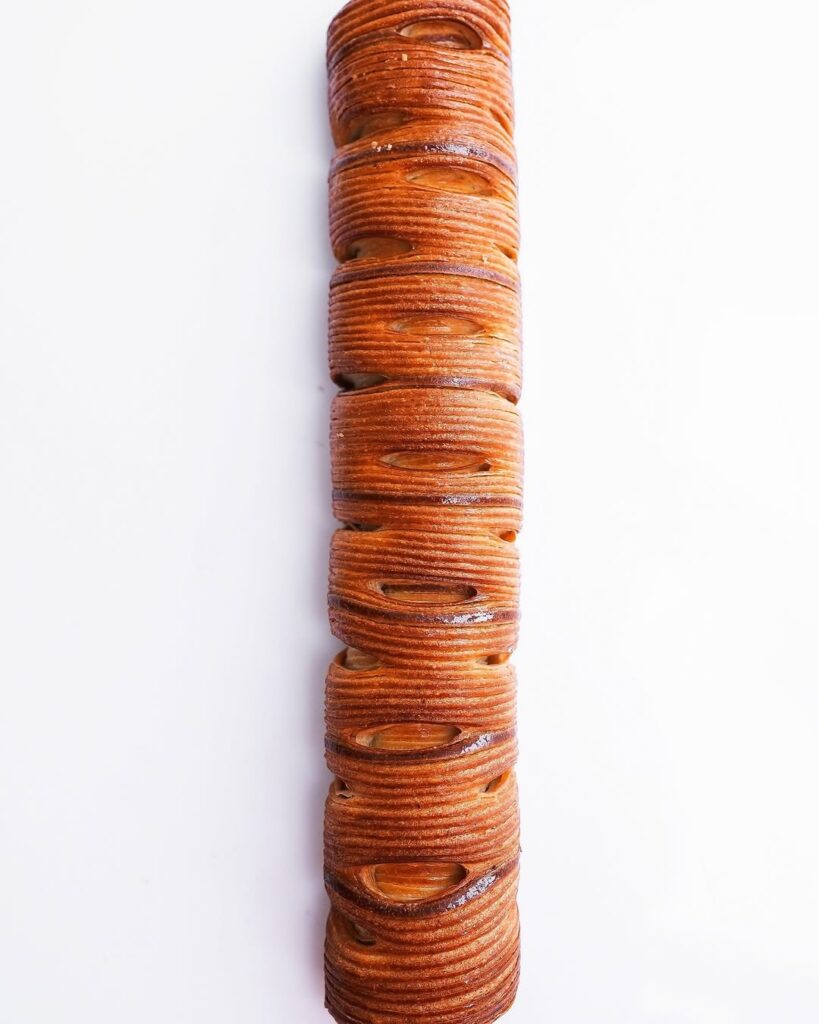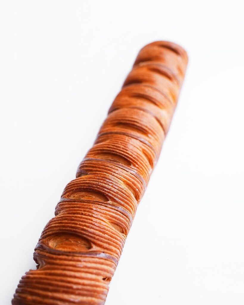 Animé par un besoin de comprendre en profondeur les mécanismes techniques, il perfectionne ses gestes et ses recettes jusqu’à atteindre une signature unique : des viennoiseries “laser” à la découpe parfaite, au feuilletage millimétré et au goût franc.