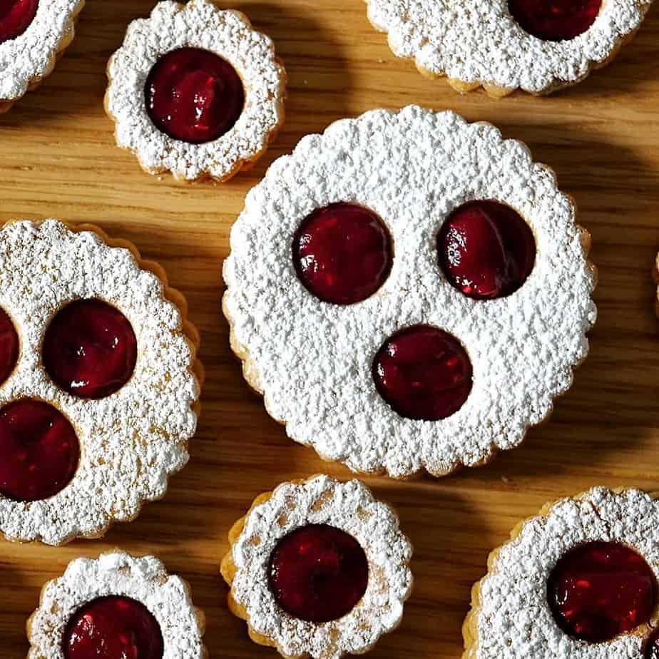 In Deutschland heißen sie Linzeraugen und es eins der beliebtesten Kekse die gegessen werden, einfach nur lecker!