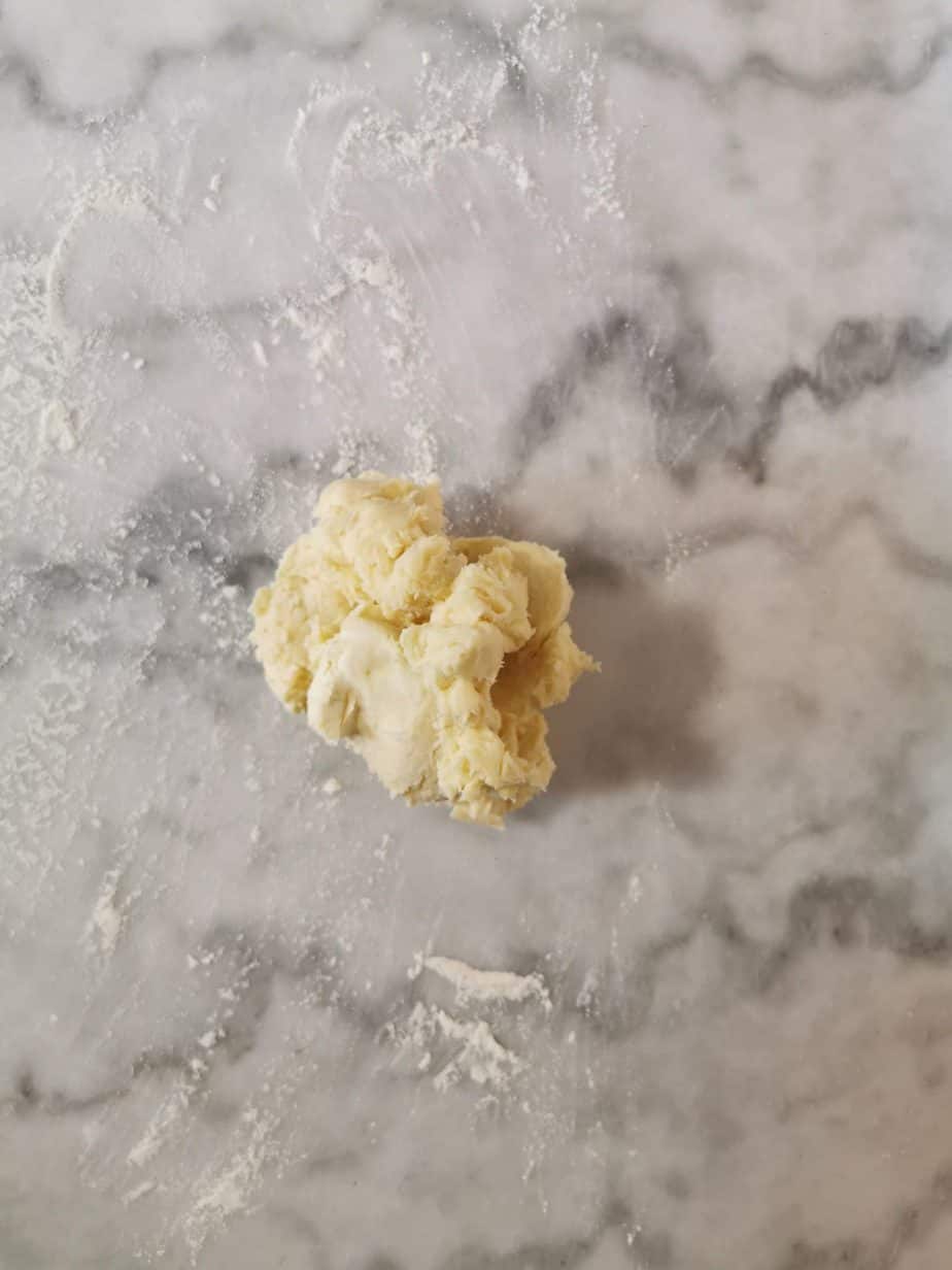 Important : Disposez un récipient rempli de farine T45 à côté de vous, et farinez généreusement votre plan de travail. Le beurre manié a tendance à coller, donc ne lésinez pas sur la quantité. Vous aurez sans doute besoin de fariner en cours de route également. Si vous sentez que votre pâte devient un peu collante au toucher, farinez-la bien dessus et dessous avant de continuer à l’étaler.