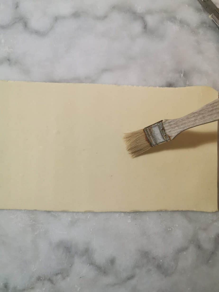 Astuce n°3 : Pour éviter que les bords de votre feuilletage partent en “arrondi” lorsque vous l’étalez, étalez les bords en les ramenant vers le centre plutôt qu’en les poussant vers l’extérieur.