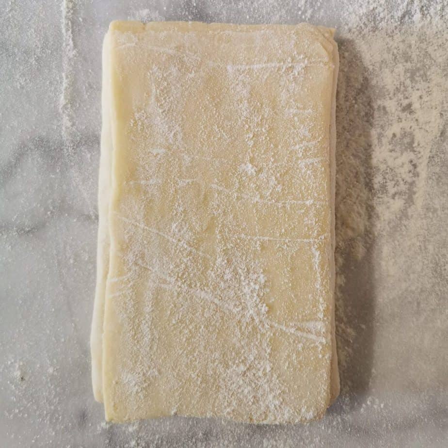 Pliez le pâton de feuilletage en trois de manière à ce que les trois parties se superposent parfaitement.