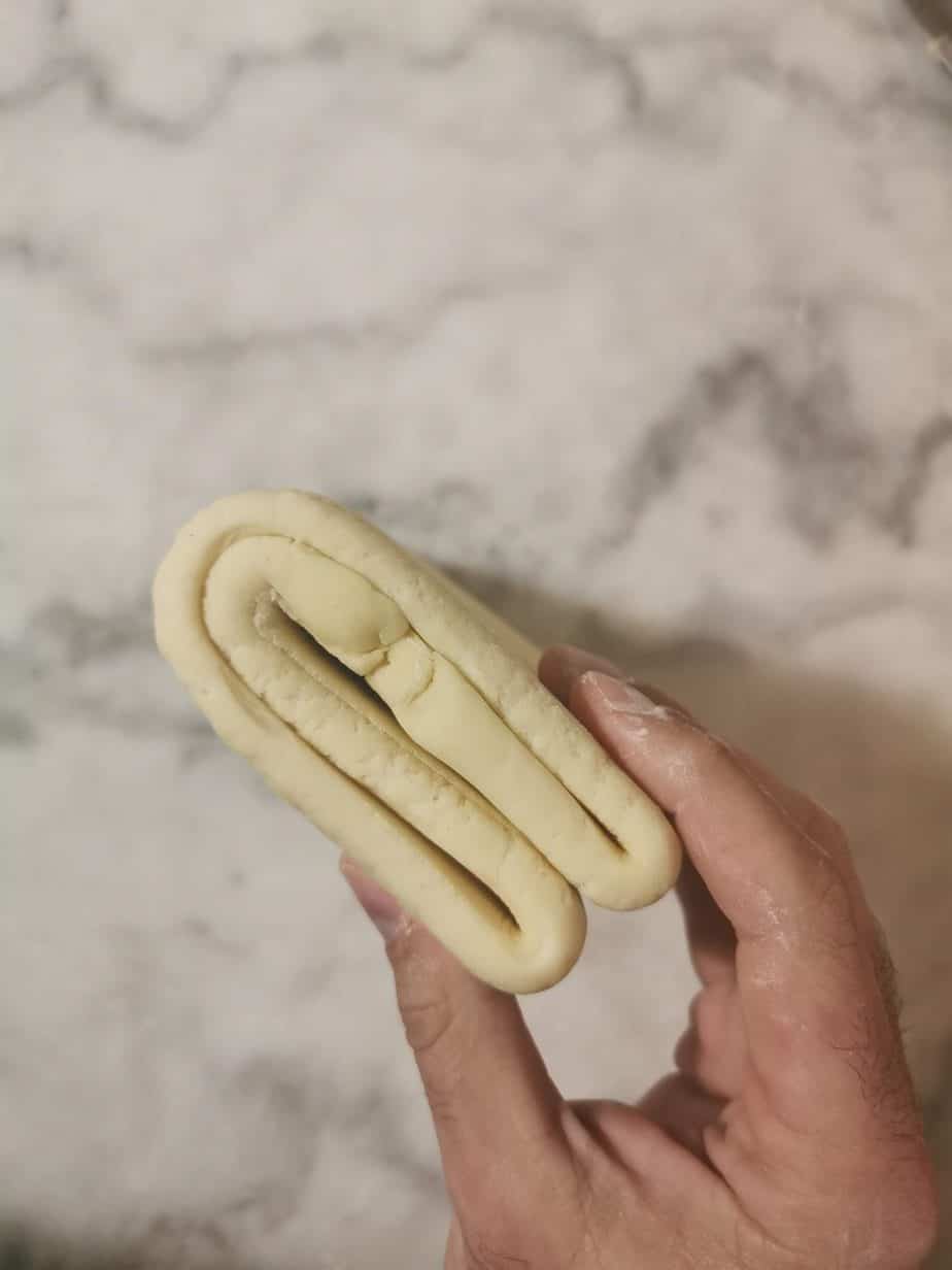 • Astuce n°5 : Faites en sorte que la jonction entre les deux parties pliées ne tombe pas au milieu du pâton. En réalisant cette astuce, vous vous assurez de la parfaite jonction entre les deux parties, même lorsque vous réaliserez le prochain tour.