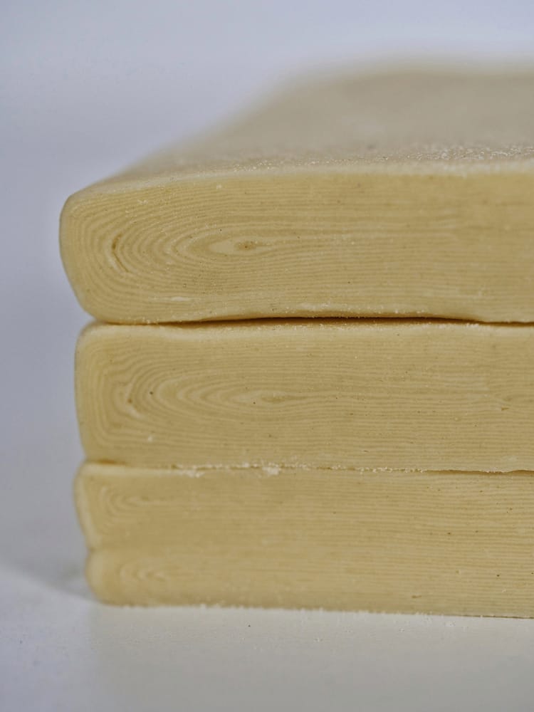 Le principe de la pâte feuilletée inversée est tout simplement l’inverse de celui de la pâte feuilletée classique (on ne l’a pas cherchée bien loin celle-là !). Plutôt que d’enfermer une couche de beurre entre deux couches de détrempe (c’est ainsi qu’on appelle la pâte), on va enfermer une couche de pâte entre deux épaisseurs de beurre “manié” (un beurre auquel on a ajouté de la farine).