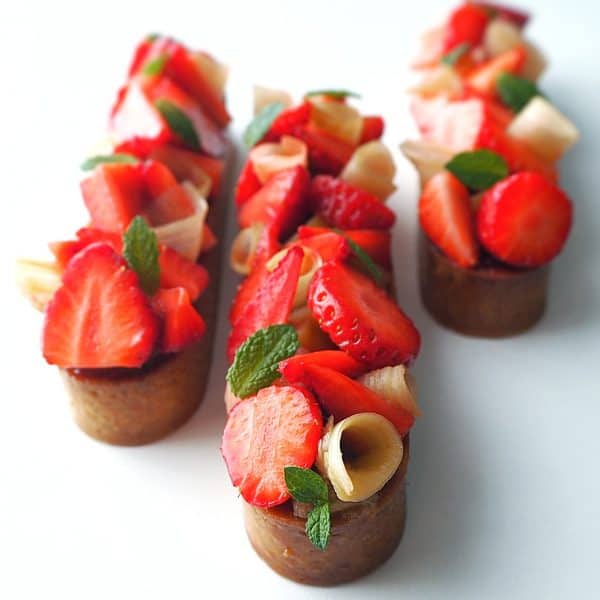 Tartelette fraise-rhubarbe vue de face