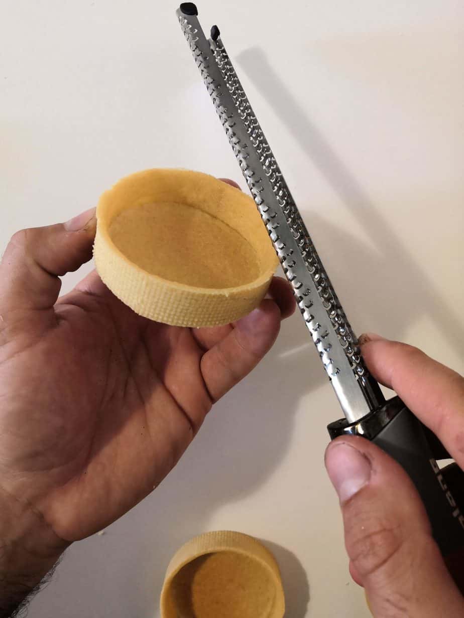 Limer bords tartelette pâte sucrée à l'aide d'une râpe Microplane®