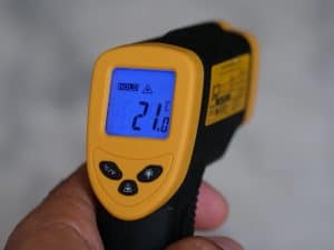 Si un thermomètre sonde fait très bien l’affaire, on préfère largement utiliser un thermomètre à visée laser.